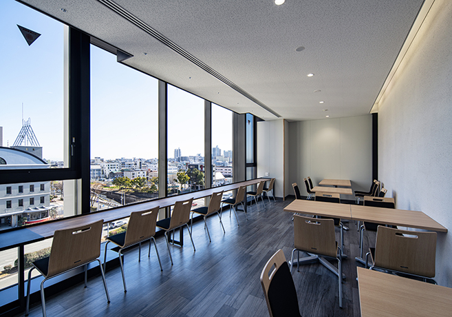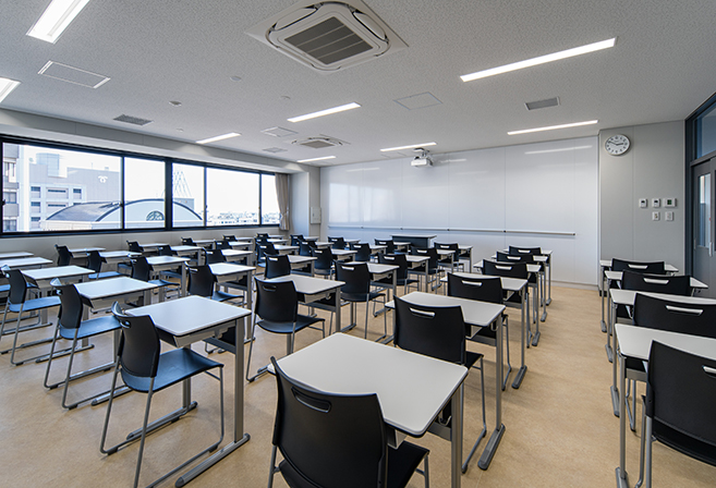今まで分棟となっていた実習エリアと普通教室エリアを新校舎では積層して集約することで、学生の利便性を高めた施設構成としています。また、各階に様々な居場所を設け、学生間の交流を生み出す計画としています。