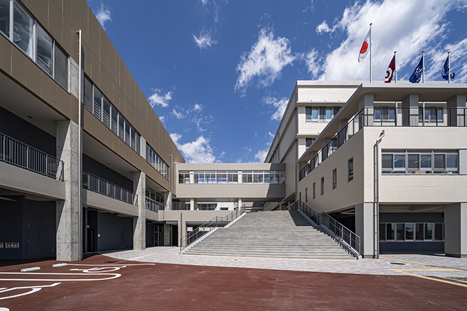中学校と高校普通科・専門科をエリア分けせず、自然な語らいが生まれる交流・共有スペースを積極的に設け、学年や分野を超えて切磋琢磨する「創造的な学習・生活環境」を実現した県東部地域の拠点校です。